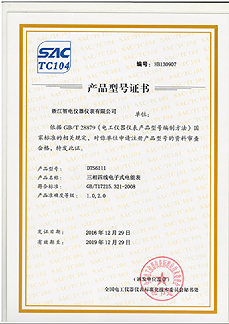 DTS6111產品型號證書
