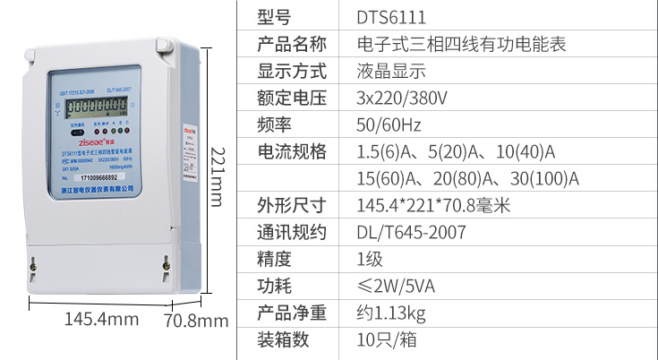 DTS6111三相四線DSS6111三相三線型三相電子式電能表是采用集成電路,16A/D轉換、數字乘法器、應用數字采樣處理技術及SMT工藝,根據工業用戶實際用電狀況所設計、制造的儀表。該表采用獨立三單元計量模塊能測量三相正向和反向的有功電能。計量誤差具有穩定性。