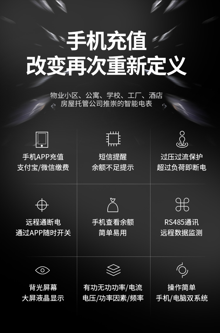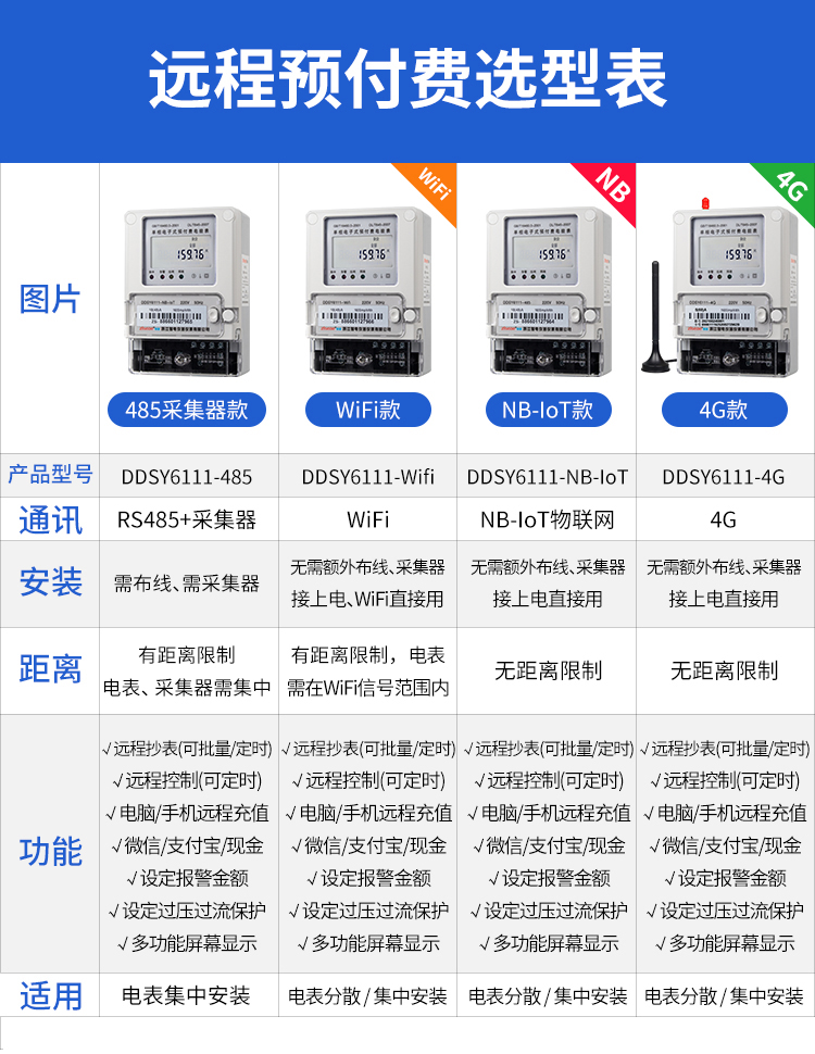 本公司DDSY6111/DDZY6111遠(yuǎn)程智能電表與本公司遠(yuǎn)程抄表系統(tǒng)和手機(jī)APP配套使用,遠(yuǎn)程抄表管理系統(tǒng)具有實(shí)時(shí)抄表、定時(shí)抄表外,還提供了設(shè)備管理功能,如告警、余額短信通知、遠(yuǎn)程充值、手機(jī)抄表、手機(jī)查詢、手機(jī)充值、預(yù)付費(fèi)、后付費(fèi)、自助充值機(jī)充值、遠(yuǎn)程拉合閘、各種查詢報(bào)表、統(tǒng)計(jì)報(bào)表下載等功能。